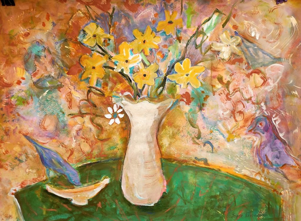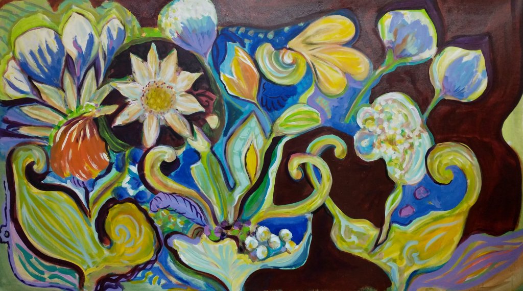 Florals, “After The Rain”, 22″H x 30″ W Acrylic on Stonehenge paper.
