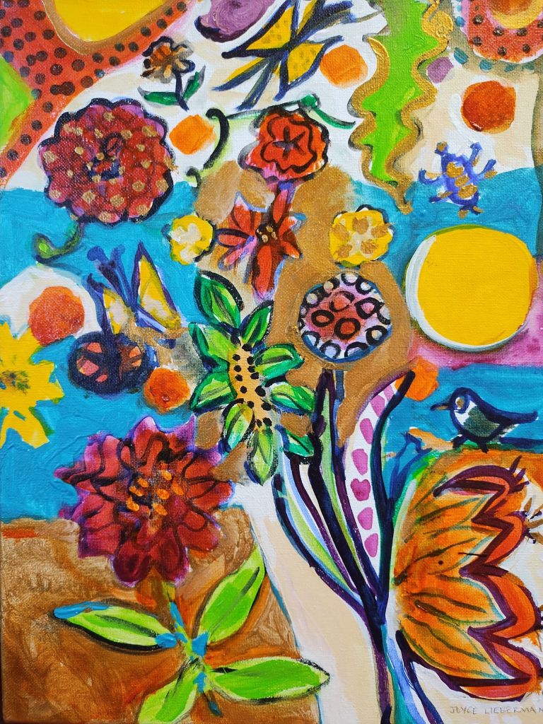 New series!“Twinkle”, 14 x 11 ” ready to hang canvas“New Spring”, acrylic paint on canvas, 2’h x 4’w“A Little Nibble”, 22 x 30″, acrylic paint on Stonehenge paper “Fruity Floral”, a return to my UnStill Life series of paintings on canvas, Stretched and ready to hang canvas is 4’H x 3’W