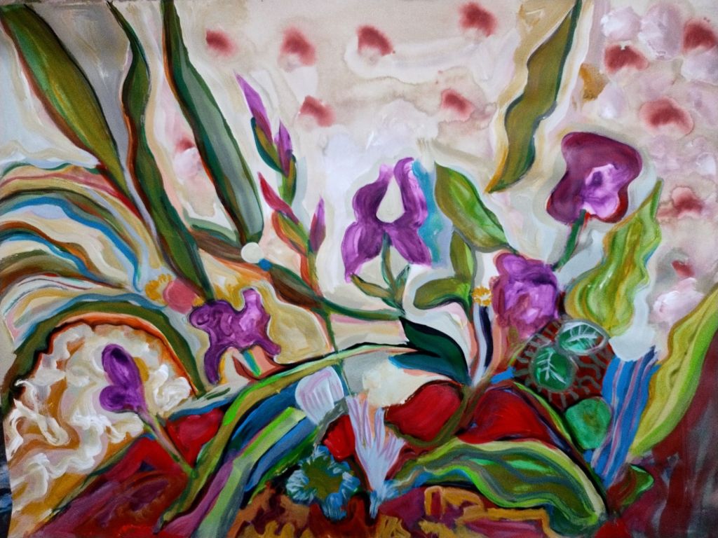 Every so often, I get a bloom on the irises, usually after the rain. I painted from a photo from the front yard after the recent rain here in Los Angeles.