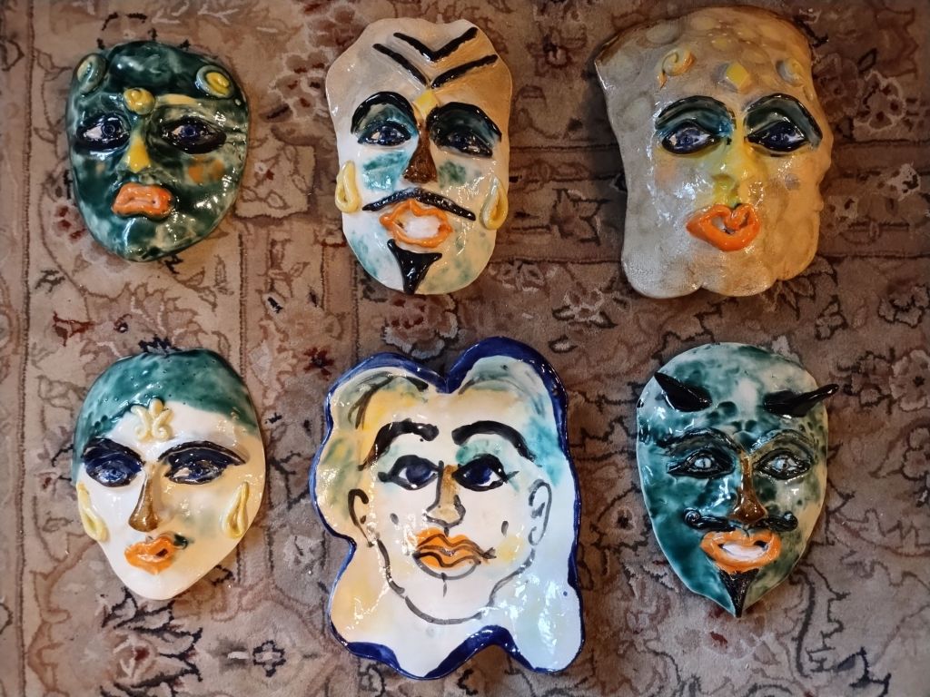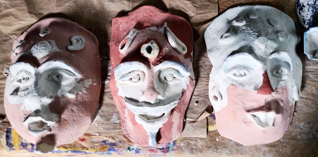 Making a dozen new ceramic masks.