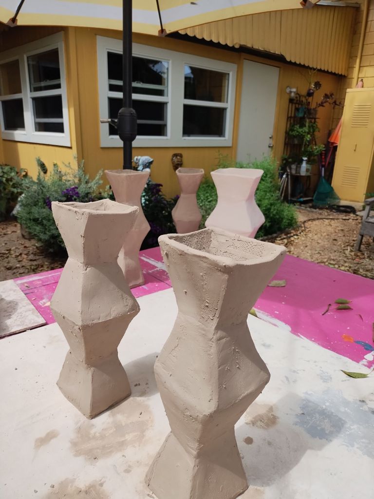 Tetrahedron Ceramic Vases Posted byjoycelieberman April 25, 2024 Leave a comment on Tetrahedron Ceramic Vases Triangles lead me to tetrahedrons. Still experimenting with the stacked tetrahedron. Finding a form, rolling out slabs, it takes 16 pieces to create four stacks of four plus a base. So happy to have found this form. Share this: Click to share on Facebook (Opens in new window) Facebook Click to share on X (Opens in new window) X Like Loading... Related Published by joycelieberman Visual Artist from Los Angeles, CA. Painting, Collage and Ceramics. View more posts