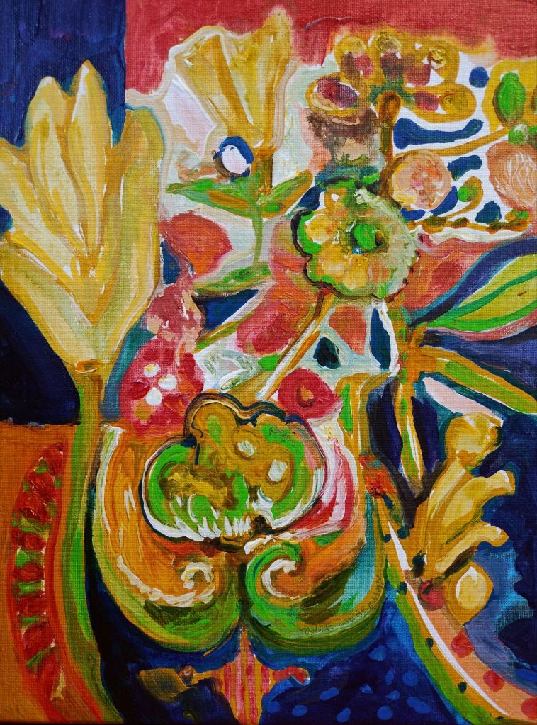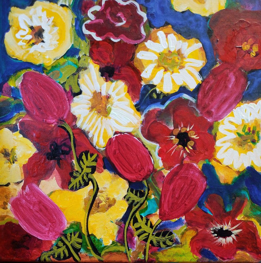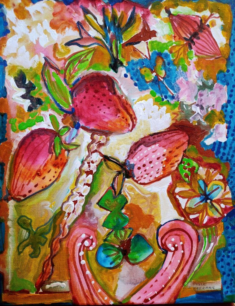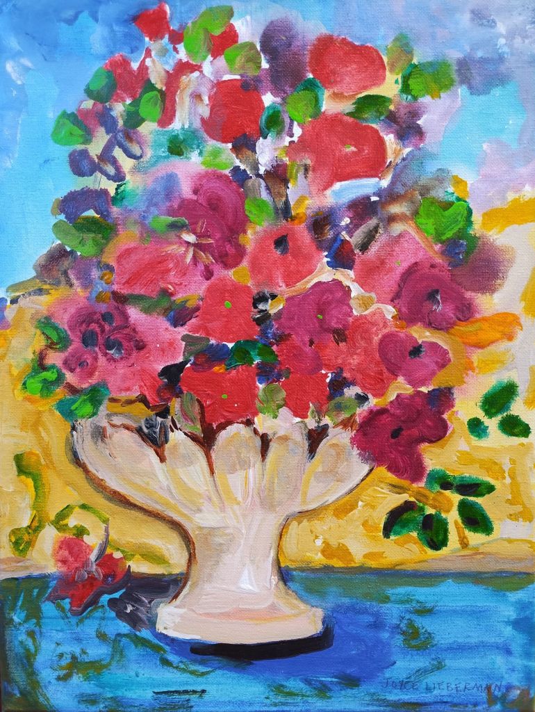 “Geraniums”, 16 x 12 ” by Joyce Lieberman Centerpiece, 16 x 12″ by Joyce Lieberman “Thistle”, 14 x 11 ” by Joyce Lieberman “Strawberry Fields”, 14 x 11″ by Joyce Lieberman “Cascade”, 12 x 12″ by Joyce Lieberman “Twinkle”, 14 x 11″ by Joyce Lieberman “Treasure”, 16 x12″ by Joyce Lieberman “Snowflake”
