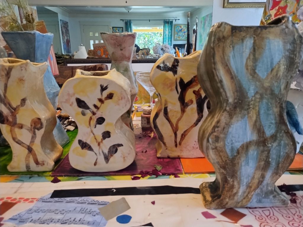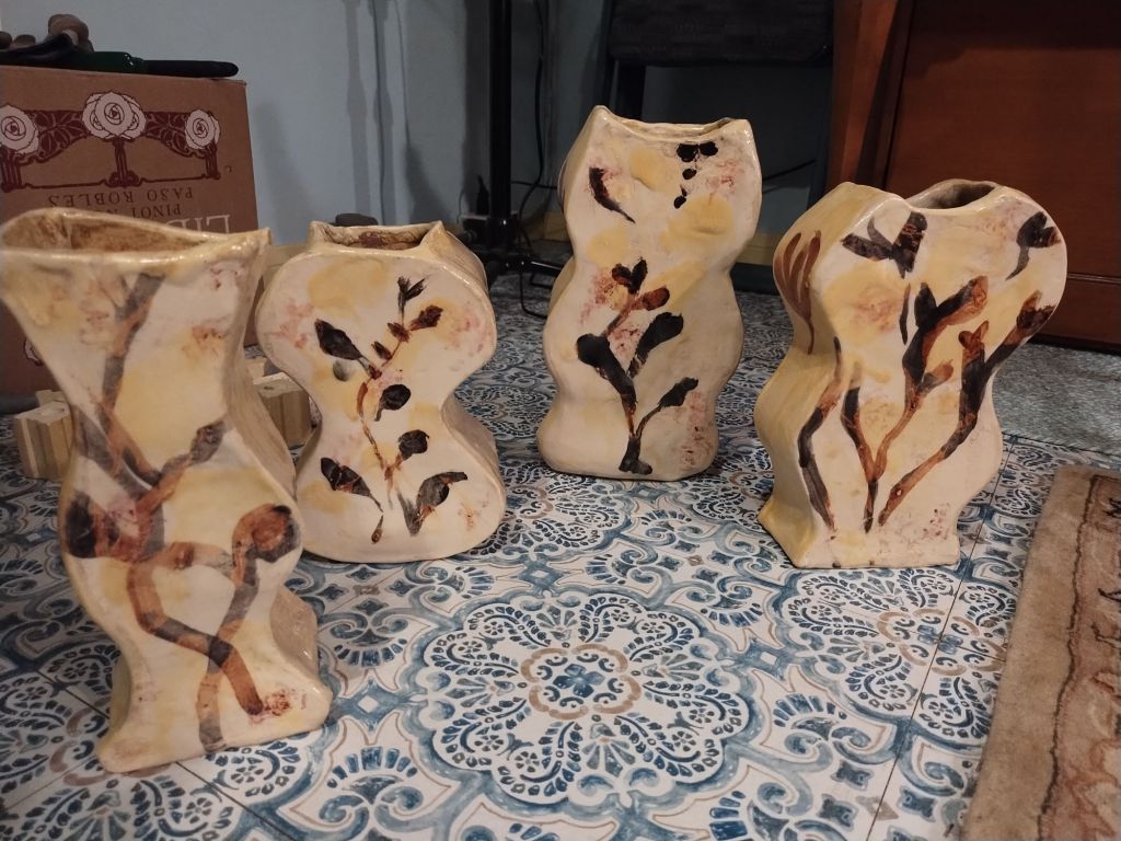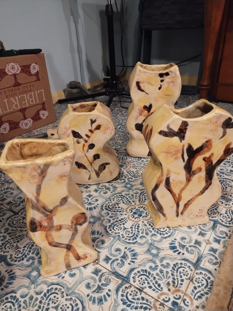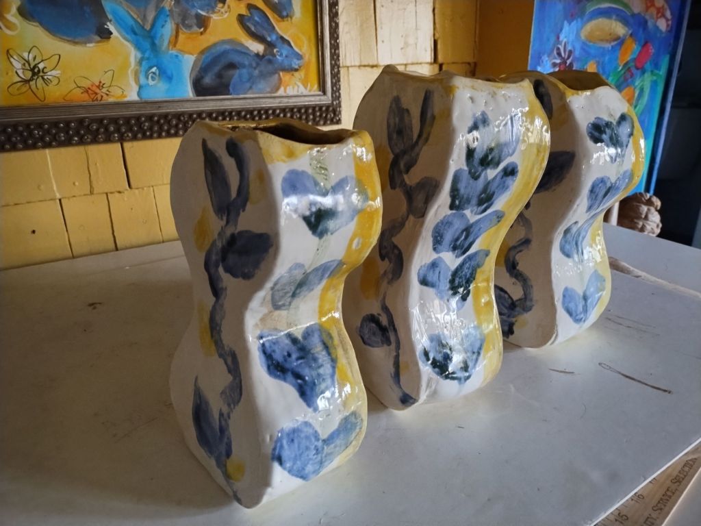 Shapely like a peanut in the shell or a guitar or a woman, these new slab construction vases are so great.