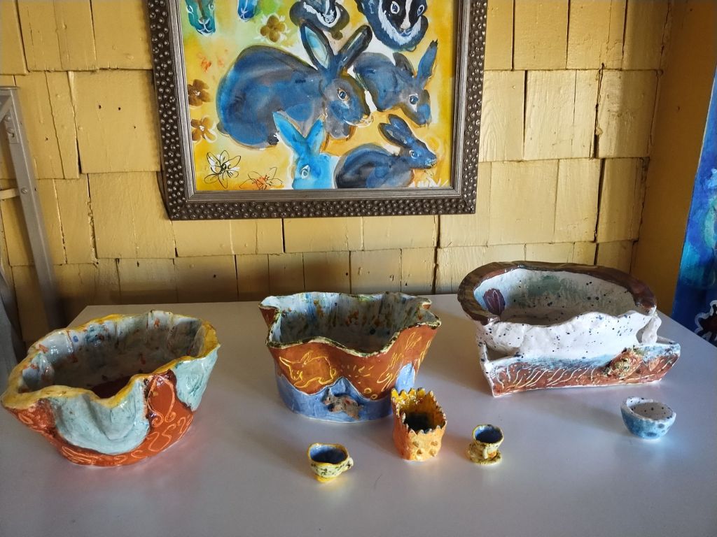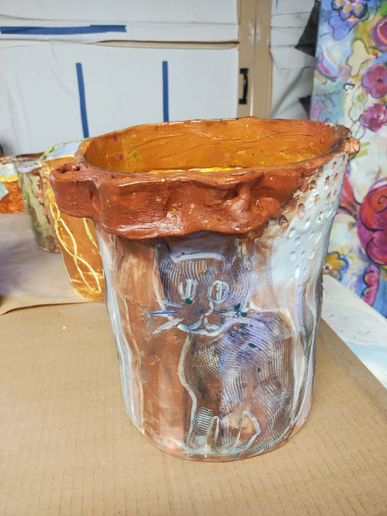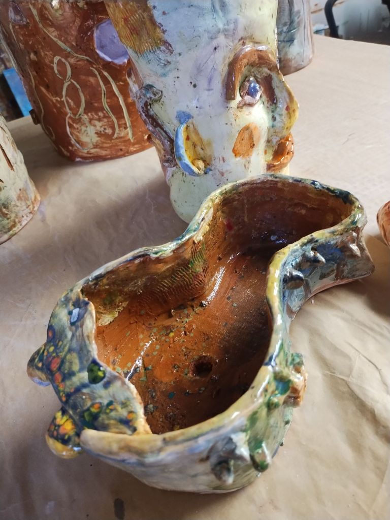 Two people working consistently together with clay get to know each other pretty well. We did a few other side projects including painting her jumpsuit for Burning Man and turning the sourdough bread starter project (epic fail on my part) into a paper mache bunny hat.