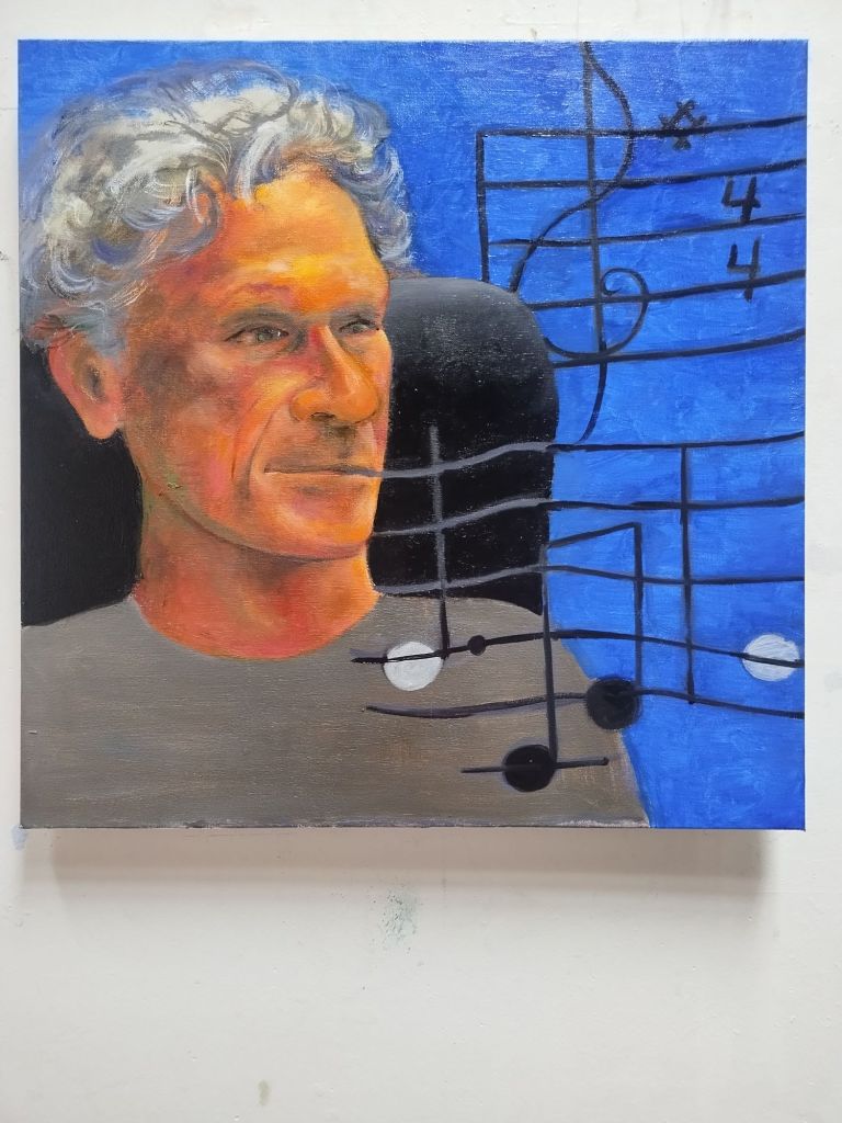 Here is the finished oil on canvas portrait with reference to the music Jimm writes.