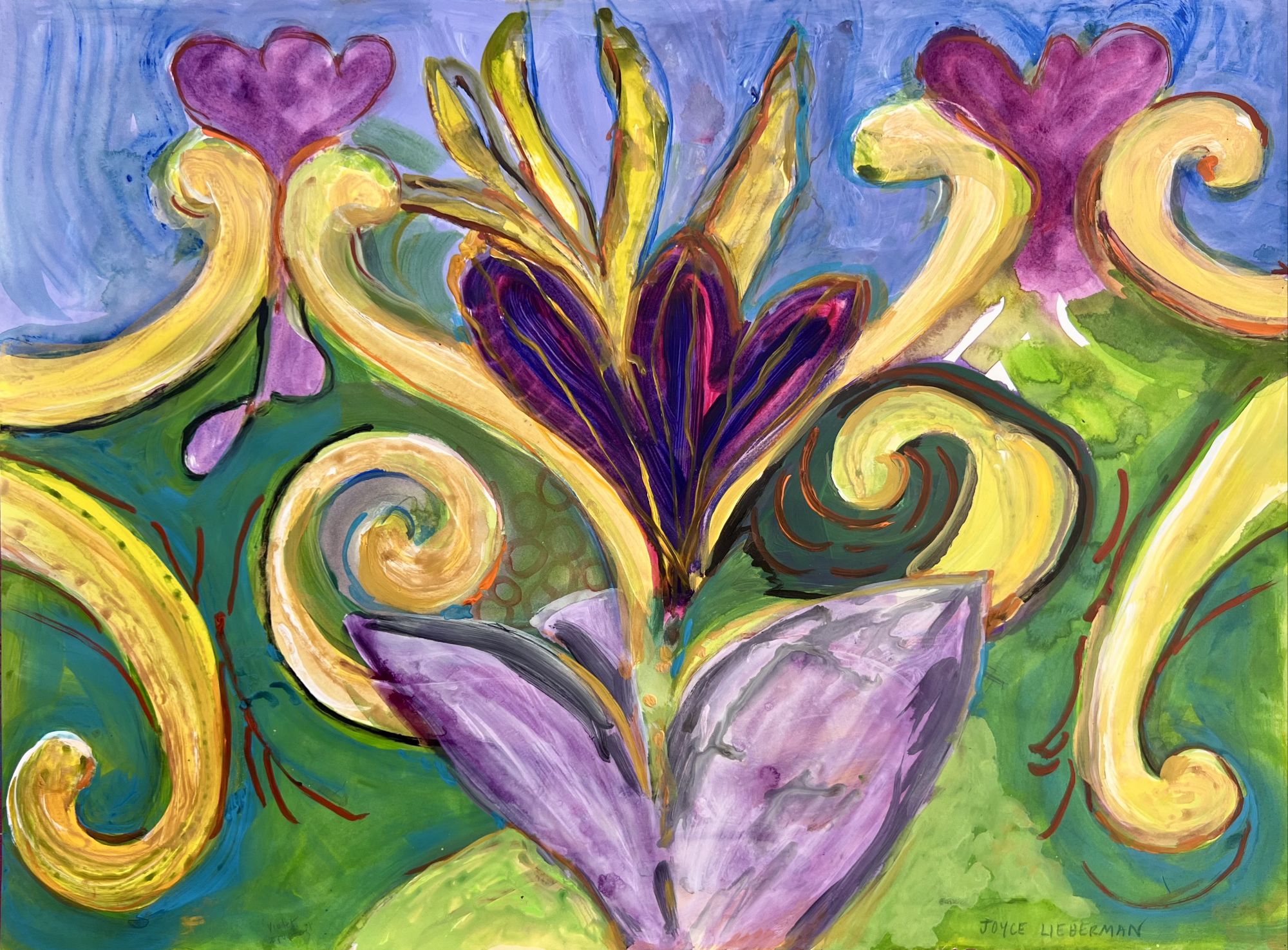 “Petunia UNStill Life” is a work on paper 22″H x 30″W. The “UNStill Life ” series of paintings have a lot of movement and strong life force.