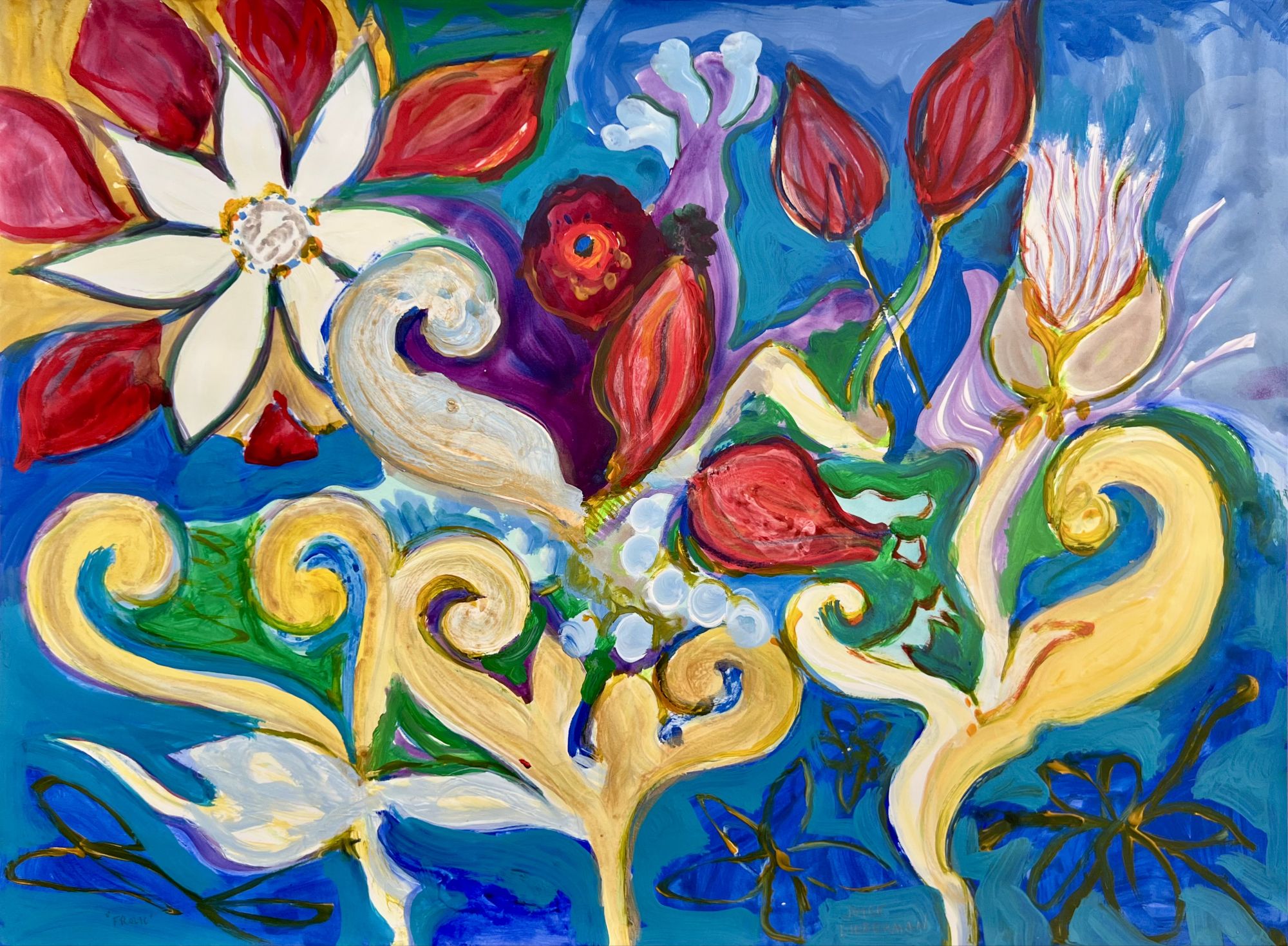 I have a series of these called “Peppy Flowers”, paintings on paper and posters are available too.