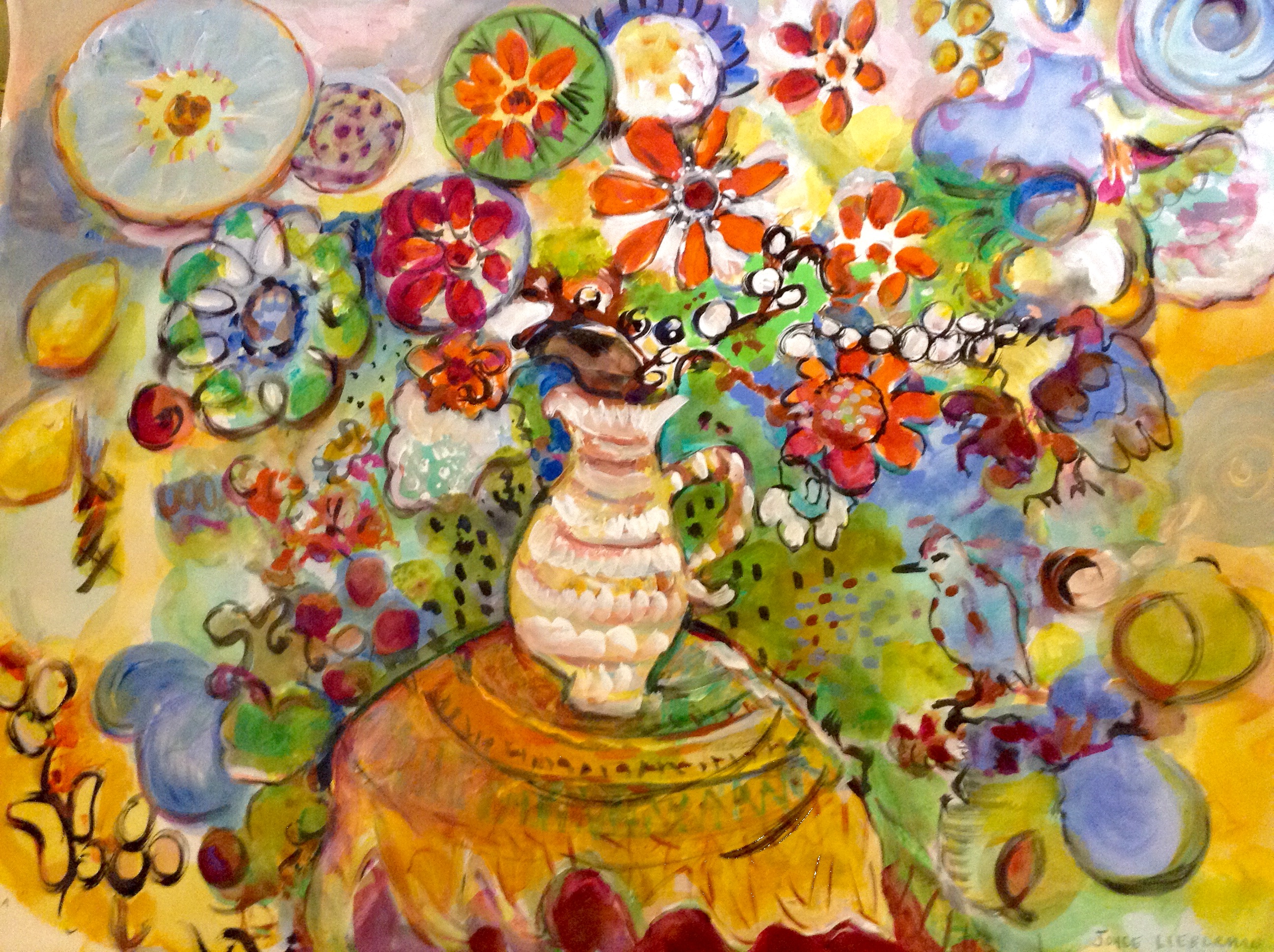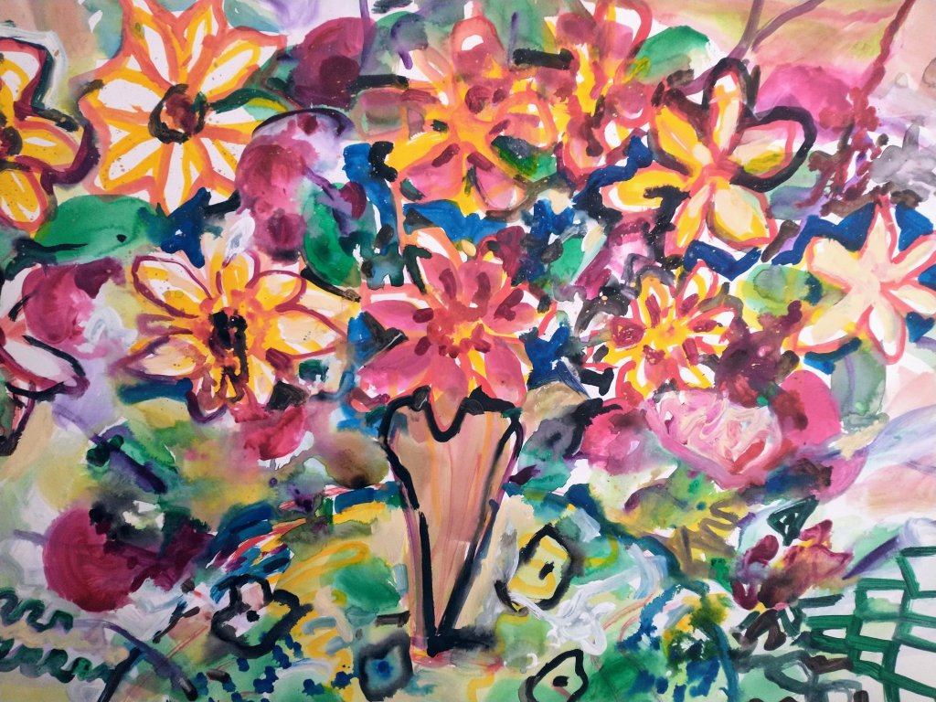 I have a series of these called “Peppy Flowers”, paintings on paper and posters are available too.