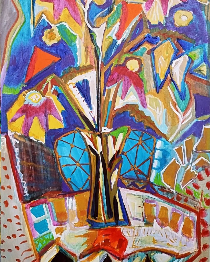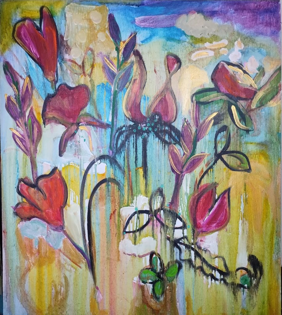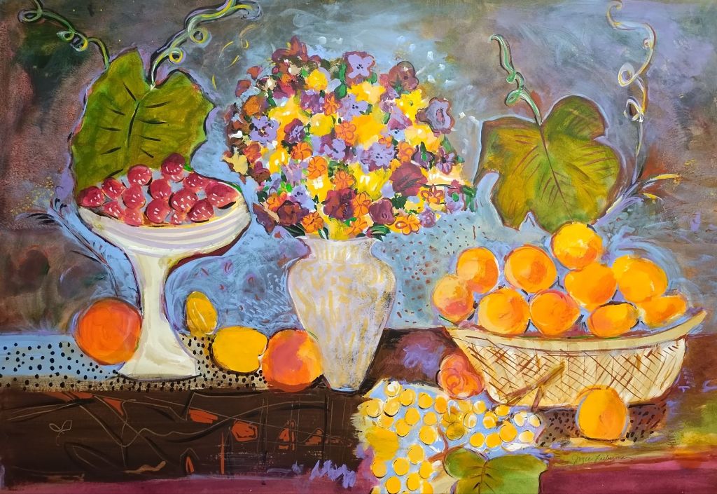 “Petunia UNStill Life” is a work on paper 22″H x 30″W. The “UNStill Life ” series of paintings have a lot of movement and strong life force.